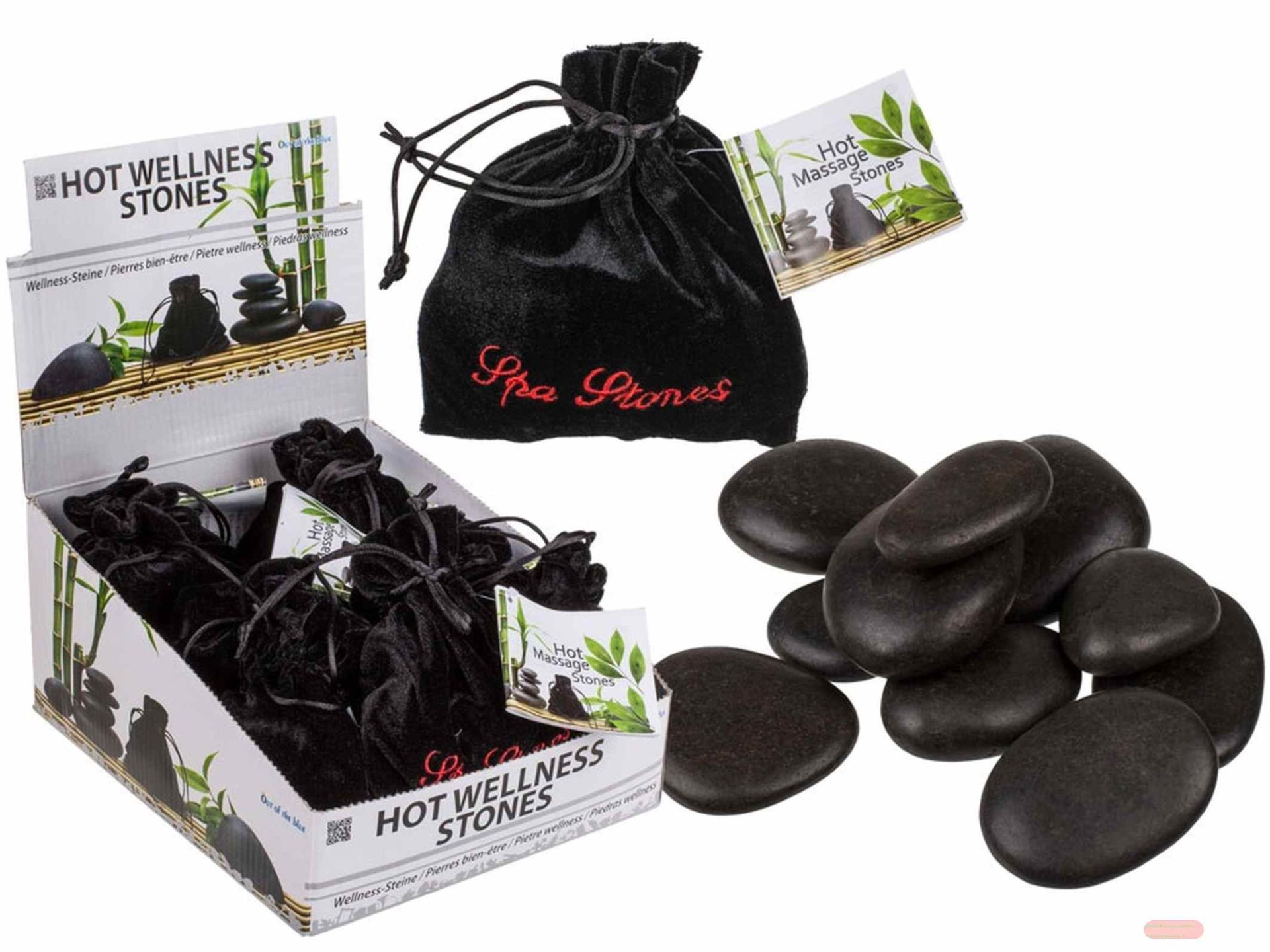 - Wellness-Steine Hot Massage Stones 9 Steine im Samtbeutel pro Set, im Display - VE 8