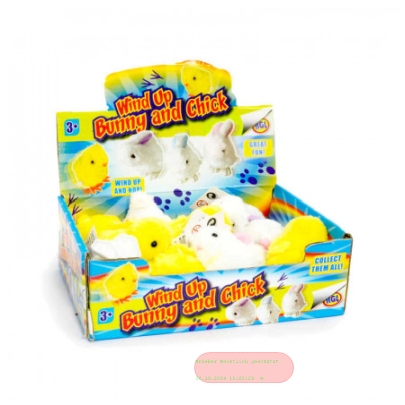 - WIND UP BUNNY AND CHICK, Clockwork aufziehbare Hasen & Küken, ca.7,5cm, im Display - VE 12