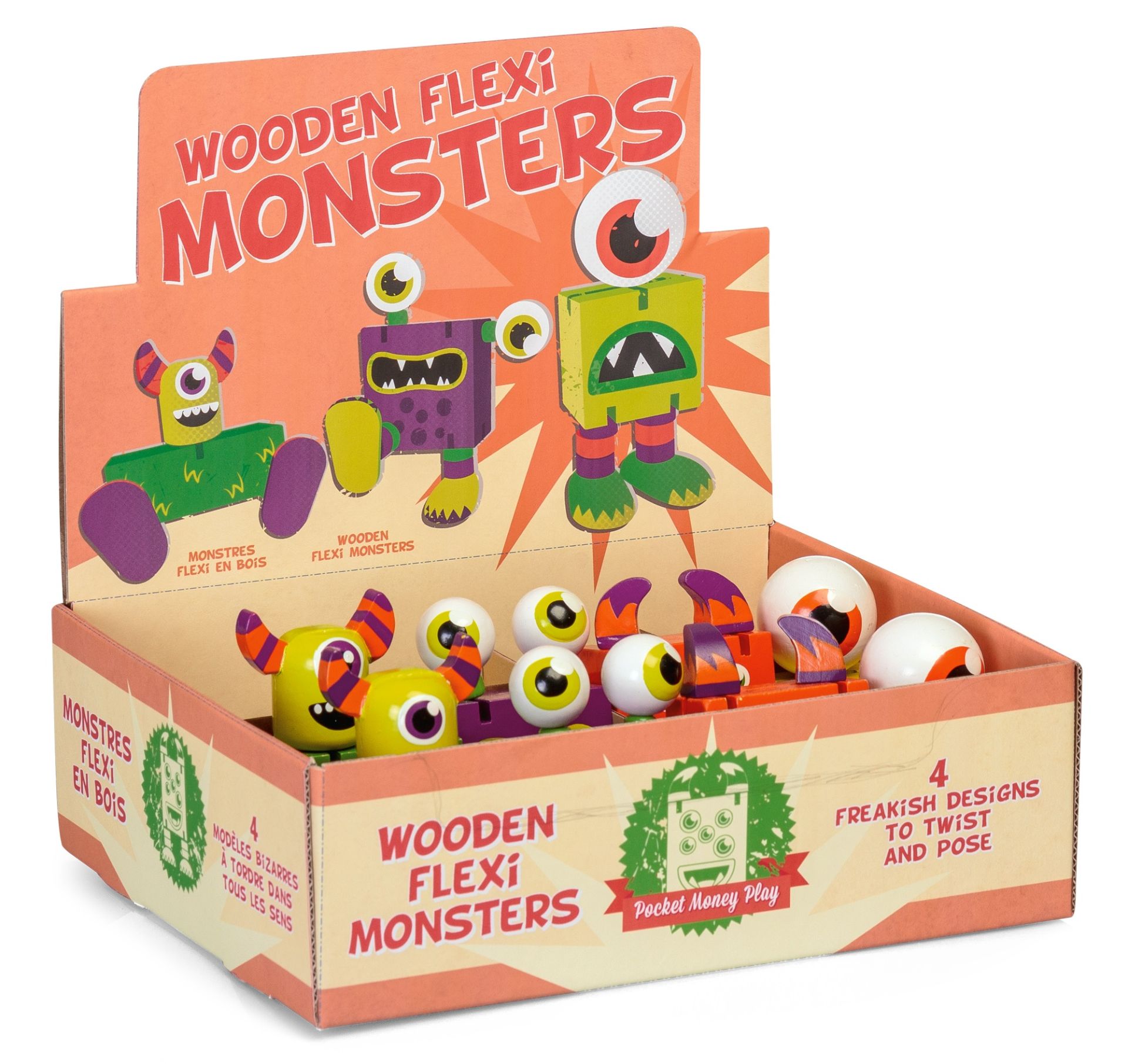 - WOODEN FLEXI MONSTERS, Biegemonster, mehrfach gemischt, Holz, ca.11cm, Display - VE 12