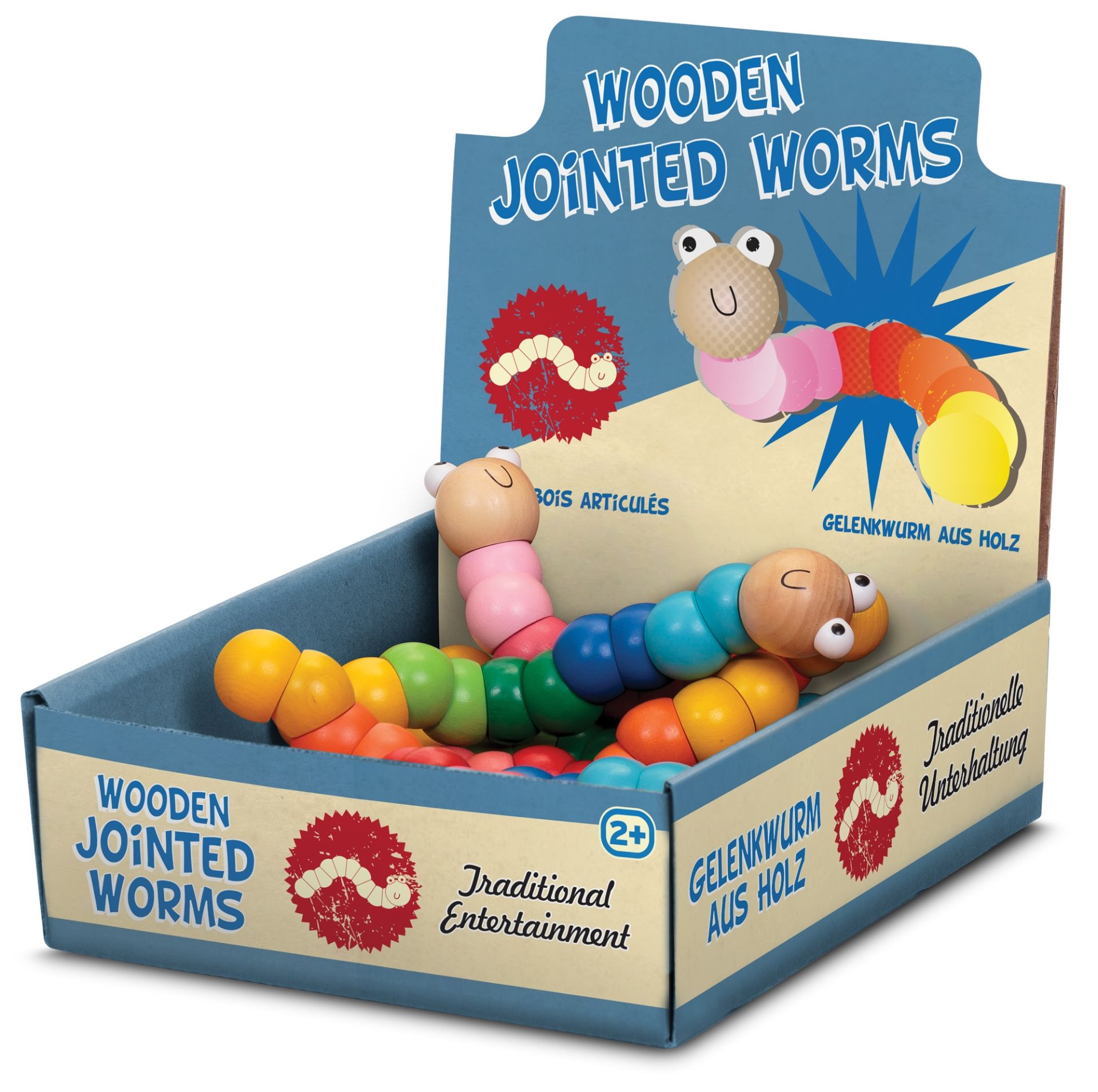 - WOODEN JOINTED WORM, FSC Holzwurm zweifach gemischt, ca.16,5cm, Display - VE 14