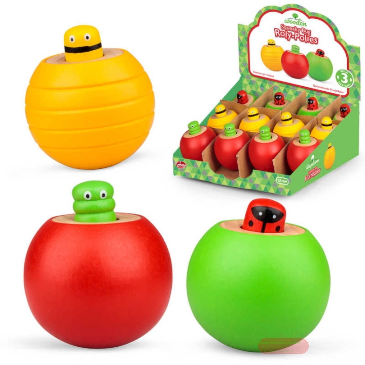 - WOODEN SQUEAKY BUG ROLY-POLIES, Holz 6cm, quitschend, Display - VE 12