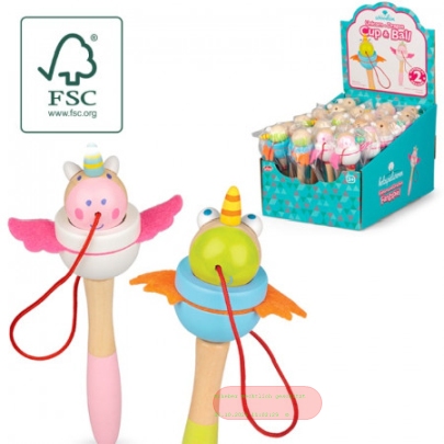 - WOODEN UNICORN AND DRAGON CUP AND BALL, Kugelspiel Holz 16,5cm, Display - VE 24 (SR)