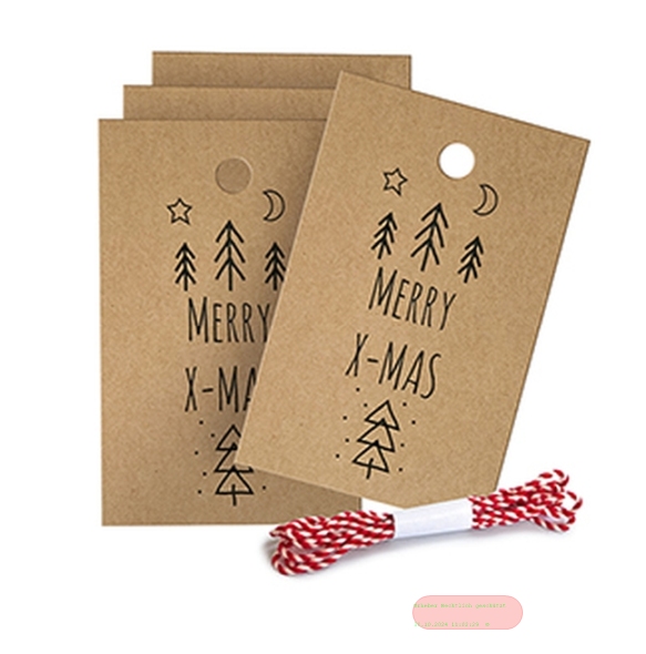- X-MAS TREE, Anhängerset, 5er Set, 8,5x5,5cm & 1,1m Kordel - VE 10 (Sets)